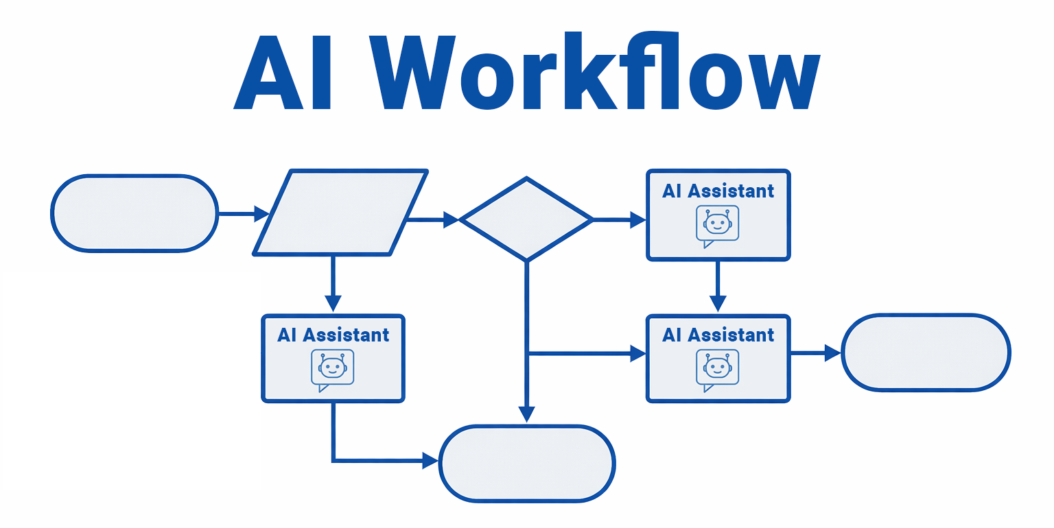 An AI workflow is a business process that includes AI at one or more steps. The AI analyzes data, makes decisions, or triggers actions as part of the larger process.
