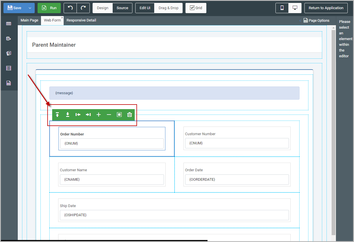 Mobile support comes in the way of responsive design. Responsive design, by definition, allows the application layout to change on-the-fly based on the end-user’s device. These templates will always use 100% of the screen real estate by default and then reorganize the on-screen elements based on available space. For a traditional grid based template, developers can edit the grid based design as well as either side the detail view.